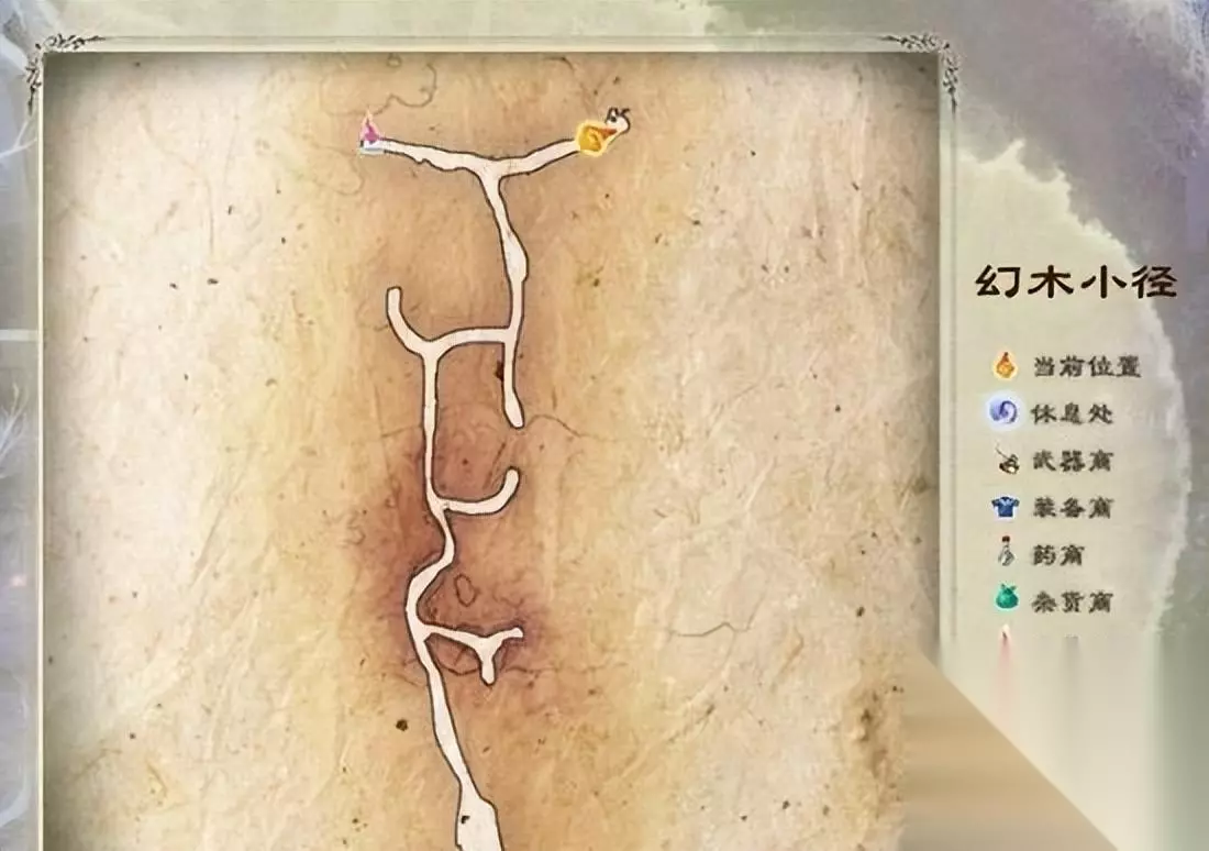 《仙剑奇侠传5》前传幻木小径地图一览 1、先附上一张简易地图,有最简单的休息点和入口出口。