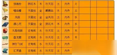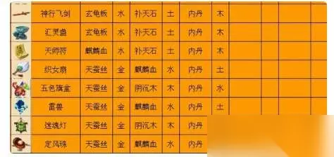 梦幻西游三级法宝如何合成 1、7种基本材料介绍:龙筋(金水)天蚕丝(金)千年阴沉木(木)玄龟板(水木)麒麟血(水火)补天石(土)金凤羽(土火)