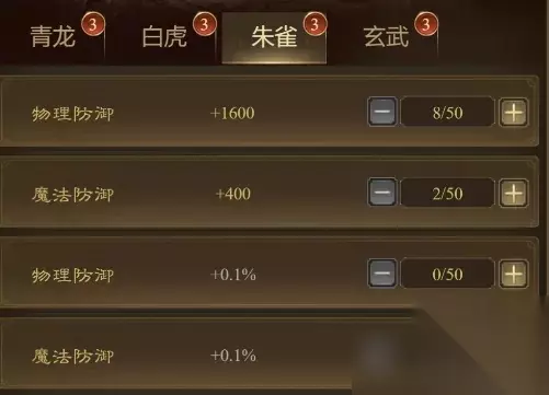 朱雀系:加物理防御、魔法防御;