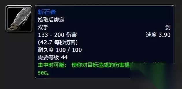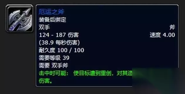 小编是玩战士的,而且特别喜欢拿双手剑,所以这把阿扎达斯出品的斩石者喵叔可以和你说我肝了很久才拥有,也是非常的记忆犹新。 这东西的恐怖之处在于其的伤害区间是133到200,如此高的攻击伤害上限运气来了随便爆击一下对于同等级的敌对玩家简直就是噩梦,小编经常扛着他驰骋于荒芜之地采矿顺手就是冲锋向了小联盟一个爆击之下直接带走,可谓我的高光时刻啊! 五:厄运钟摆(原版本叫厄运之斧,后期改的厄运钟摆)