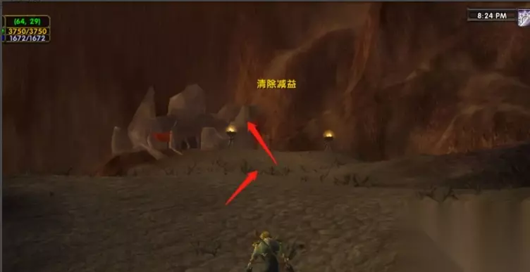 2、如果你找不到该位置,没有发现红色帐篷,那么来到下图位置,64,29坐标,会看到前面有一条路,直接走过去就看到帐篷了。