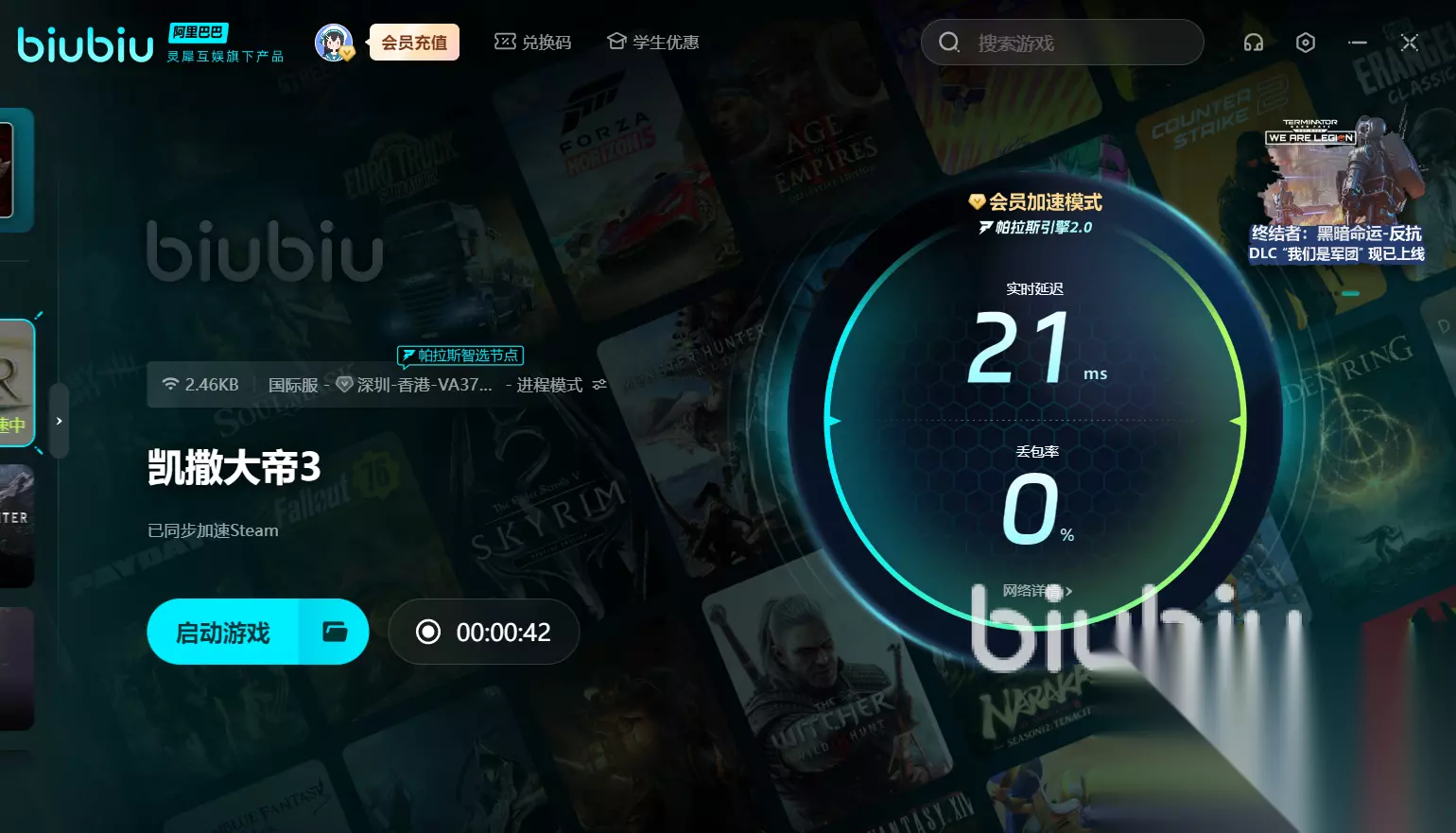 而且,对于新用户,biubiu还提供了3H的免费加速体验!若你还意犹未尽,可以通过输入【biubiu不卡顿】,免费兑换额外的加速时长三天,在其中畅快玩耍。而且,Biubiu带给大家惊艳的帕拉斯引擎2.0版本,专门针对弱网环境做了优化,即使你在学校网或者信号弱差的地方,也能享受高速稳定的宽带网。