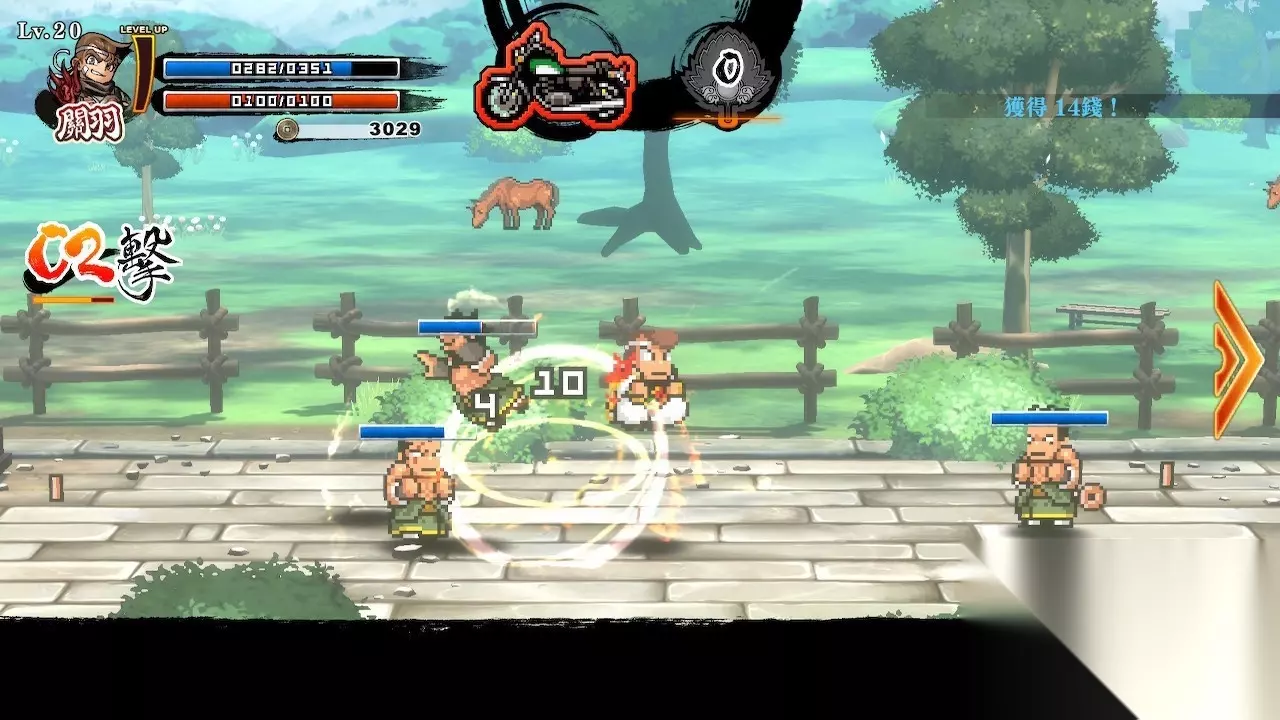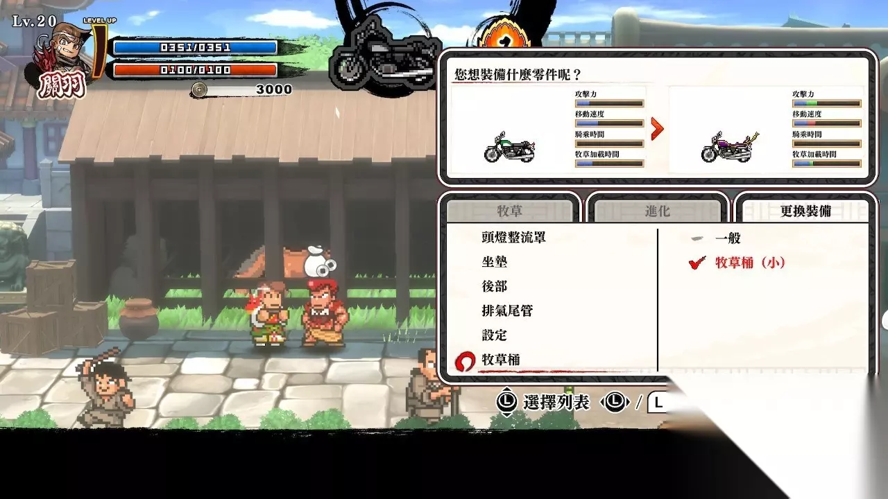 骑乘「赤兔马」打败敌人! 可以乘坐「赤兔马(摩托车)」在各关卡间移动。不须多言就把途中出现的敌人揍飞吧!拿到专用配件就可以打造「赤兔马」!随心所欲地改造赤兔马吧!另外,如果达成某种条件,「赤兔马」也有可能会进化成除了「摩托车」以外的坐骑!?