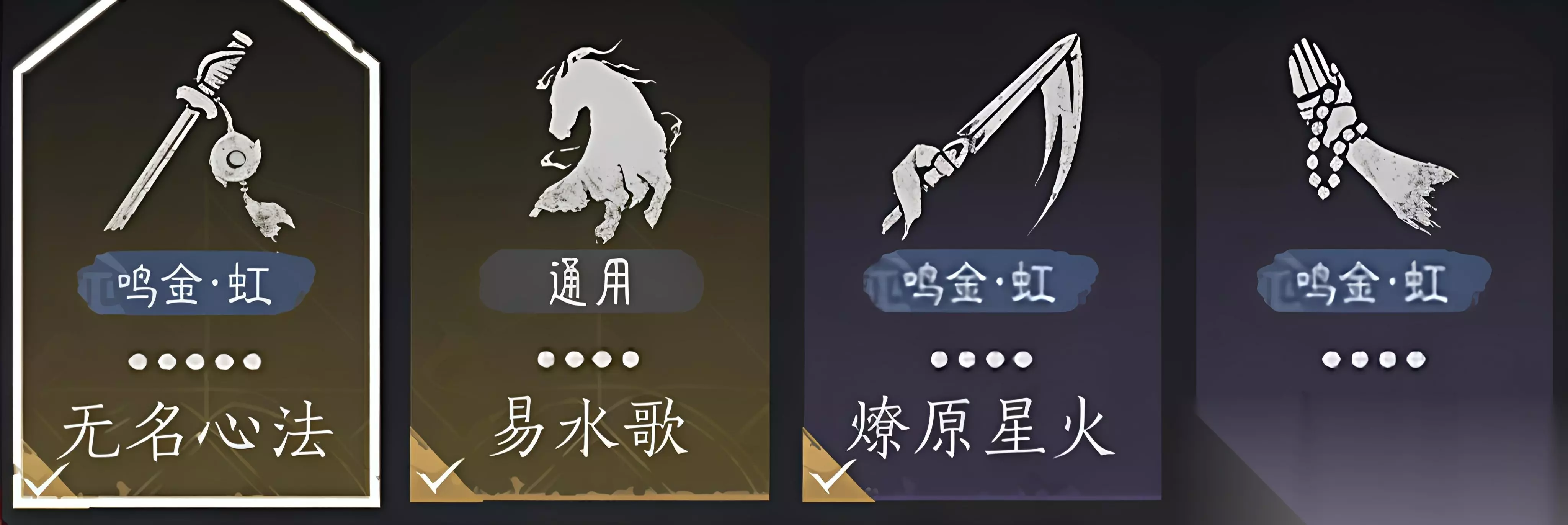 无名枪法+无名剑法 推荐套装:玉斗套 推荐心法:无名心法,易水歌,燎原星火,威猛歌