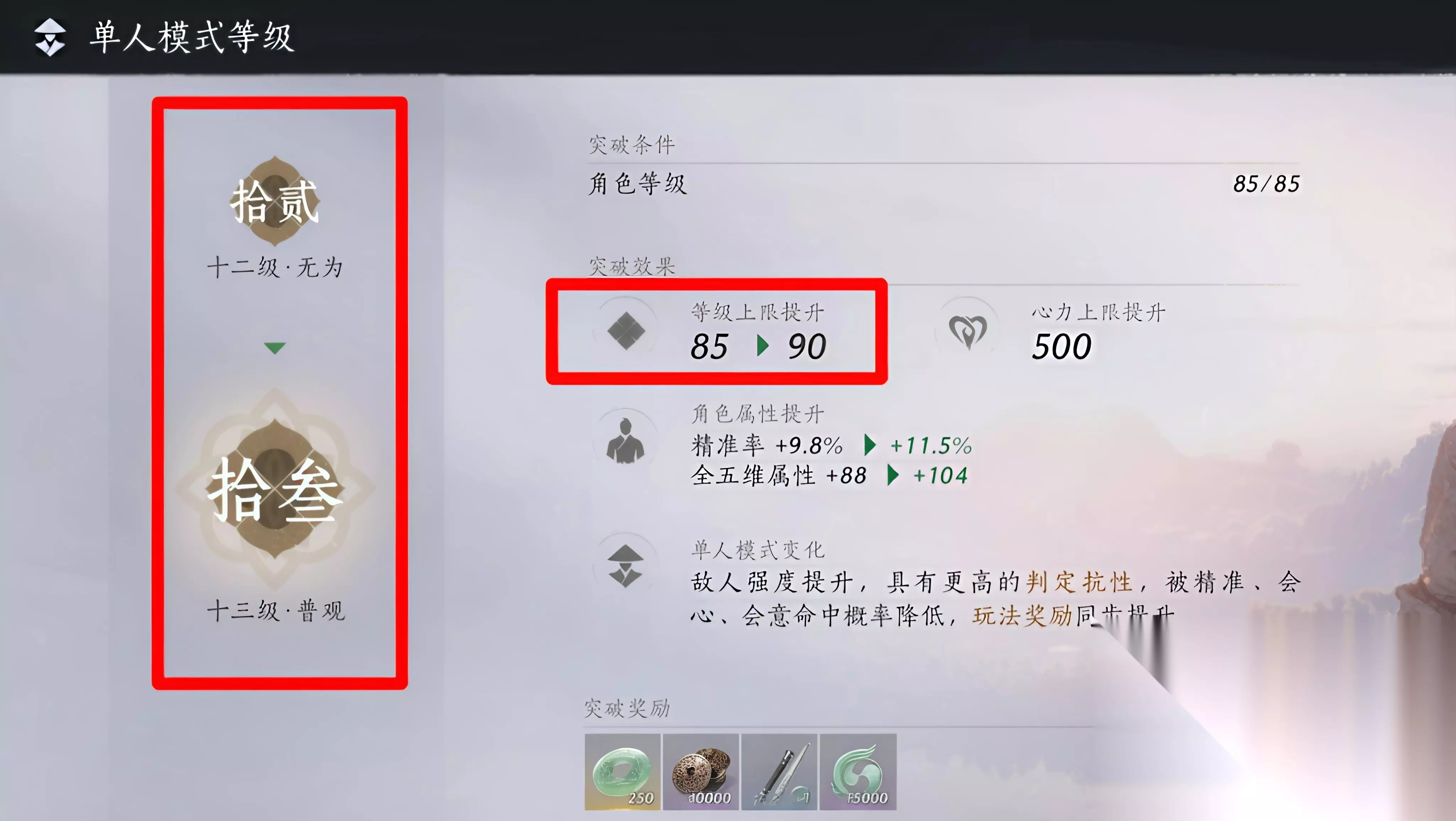 二、全新版本重要更新一览 1. 玩法方面: 等级:单人模式等级开放至十三级,角色等级上限从85级提升至90级