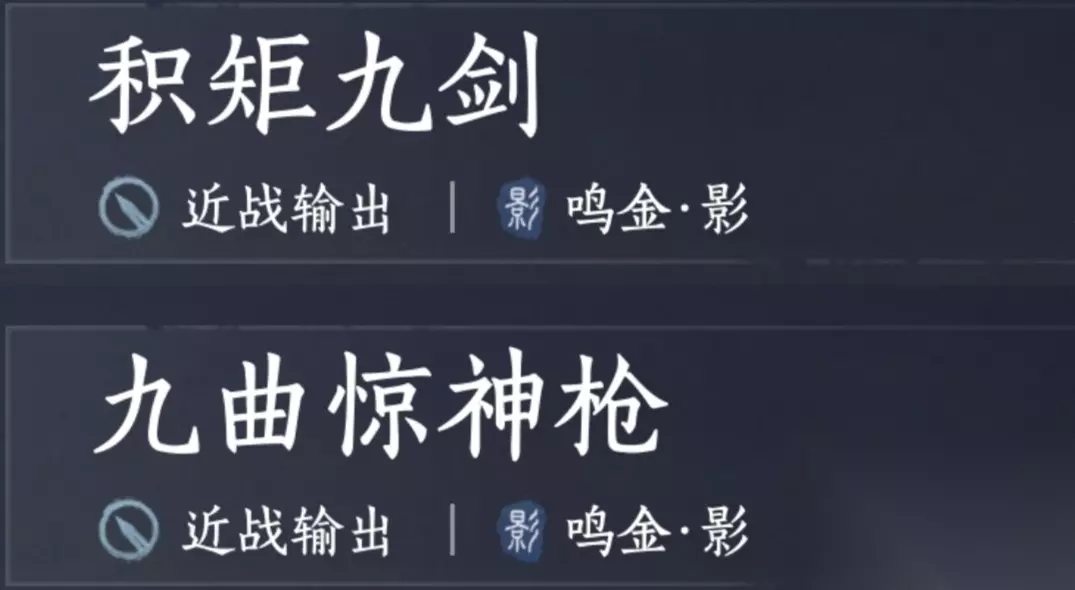 积矩九剑+九曲惊神枪 推荐套装:飞隼套 推荐心法:易水歌,剑气纵横,逐狼心经,凝神章