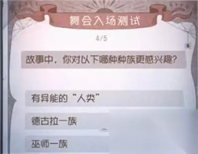 4、问题:故事中,你对以下哪种种族更感兴趣? 参考答案:巫师一族。
