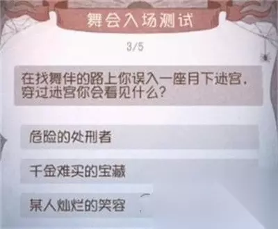3、问题:在找舞伴的路上你误入一座月下迷宫,穿过迷宫你会看见什么? 参考答案:某人灿烂的笑容。