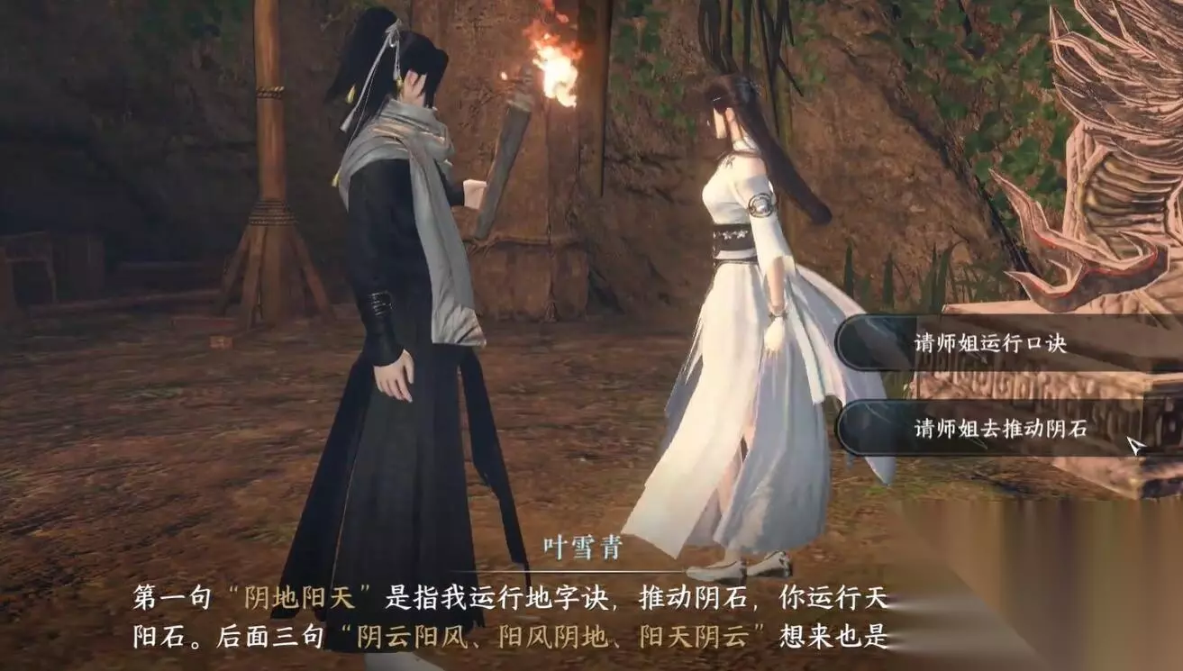 11、师姐运行云字公式,自己的天字公式,把阳石推到左边的石头上。 12、之后洞穴就会有出路,沿着前面的路一直往前走。