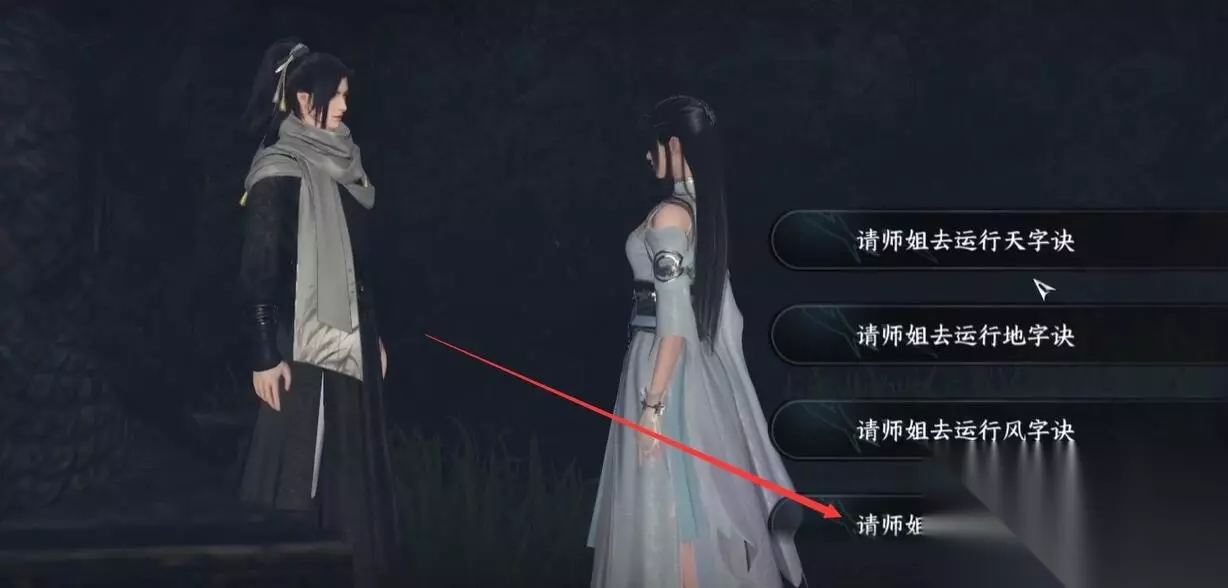 3、然后场景会自动转到师姐叶雪青这里与她交谈。