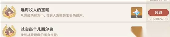 注意:玩家也可以直接根据四叶草的标记寻找哦。 奇怪的标记任务奖励: 在玩家完成标记收集之后,即可解锁成就 「远海牧人的宝藏」和「诚实高个儿西尔弗」,并领取相应奖励。