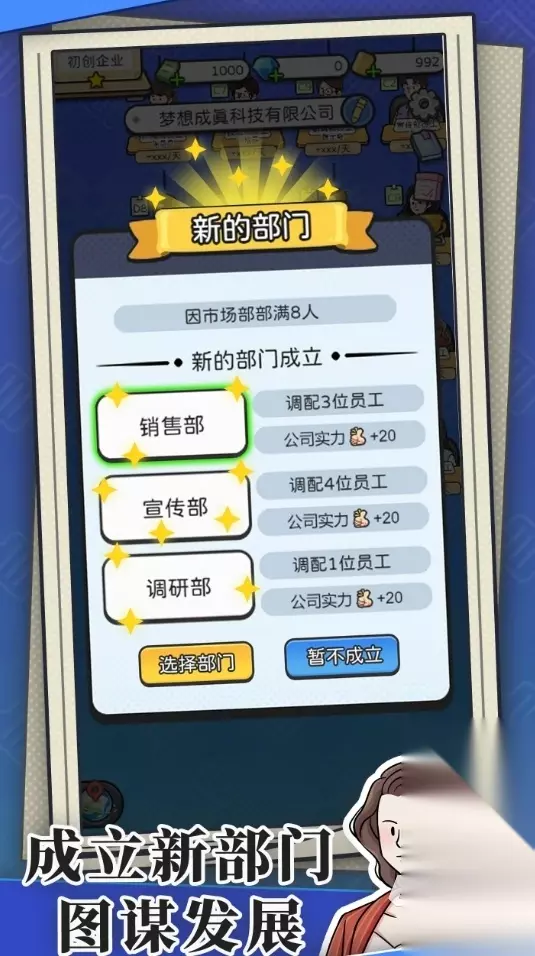 玩法十分简单的刷怪类小游戏,只要各位搭配好自己的英雄阵容,他们就会自动进行冒险和战斗,为玩家们带来众多的战利品,而且在离线时英雄们的战斗也不回停歇,让玩家可在再次上线后通过收菜来获取离线期间所产出的一切收益。同时,玩家也能对英雄进行多维度的养成,组建出不同的战斗体系,在配队策略上并不死板。 高速下载 普通下载 优先233乐园APP下载 2、《董事长模拟器》