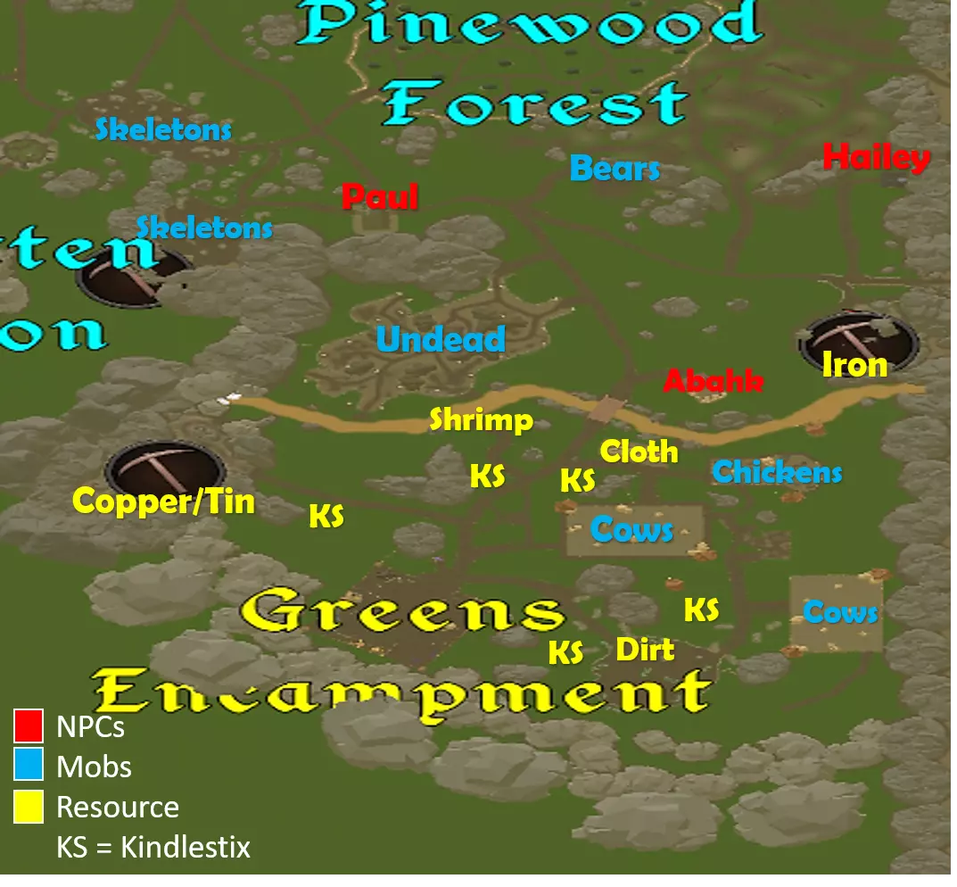 《 Realm of Simplicity 》新手区域更新地图。内容:怪物、资源和非玩家角色。