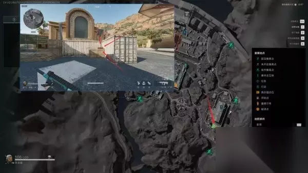 八号藏宝图 位于行政楼集装箱和二号坝门的夹角处 「这个点位是必出红,小心被蹲」 拾取道具时有3秒延迟!!!「八号宝藏物品一栏」