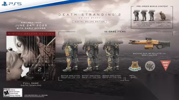 【死亡搁浅2攻略】 死亡搁浅2买哪个版本 答:豪华版 各版本对比: ●标准版 售价:69.99美元 预购奖励:全系影像-尾矮袋鼠战斗、外骨骼、增强外骨骼、步荷外骨骼/银色。 只想体验游戏的玩家可以买豪华版,性价比最高。