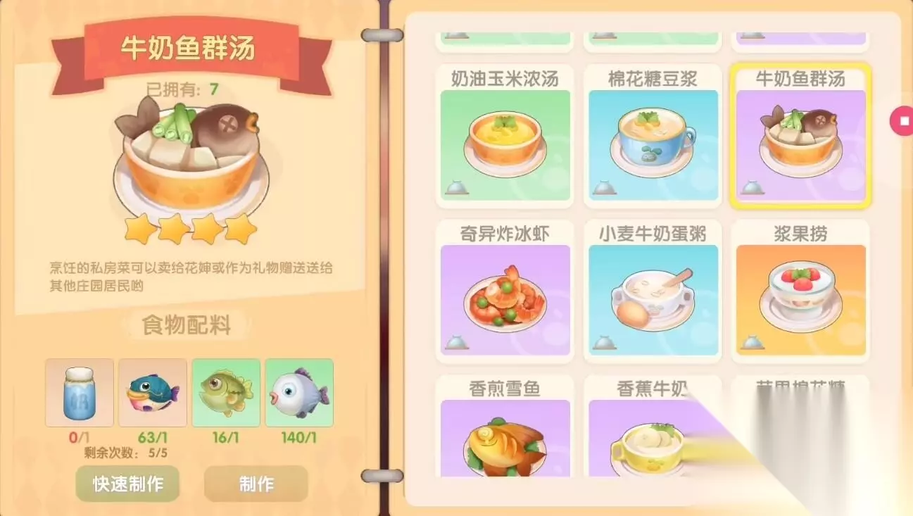 摩尔庄园手游棉花糖豆浆食谱 食谱配方:小麦*2、牛奶*1、鸡蛋*2、鸭蛋*1 稀有度:3星