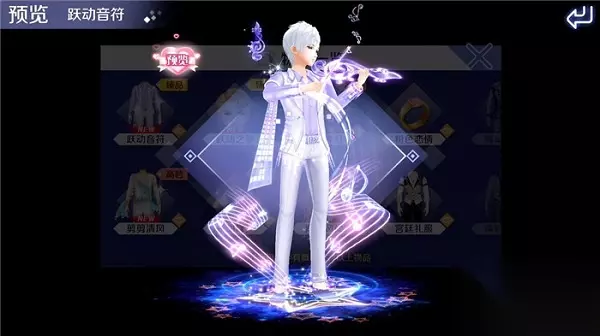 在4月6日,QQ炫舞手游全新推出首款情侣特效套系——音律套装,其中主色调正是采用了当下流行的时尚紫。无论是男性套装还是女性套装,都采用了同样的拉小提琴的造型,十分高贵典雅。而最为引人注目的则是跃动的音符元素,会在环绕角色后回到服饰上的宝石中,为整体造型增添了更多的神秘感。