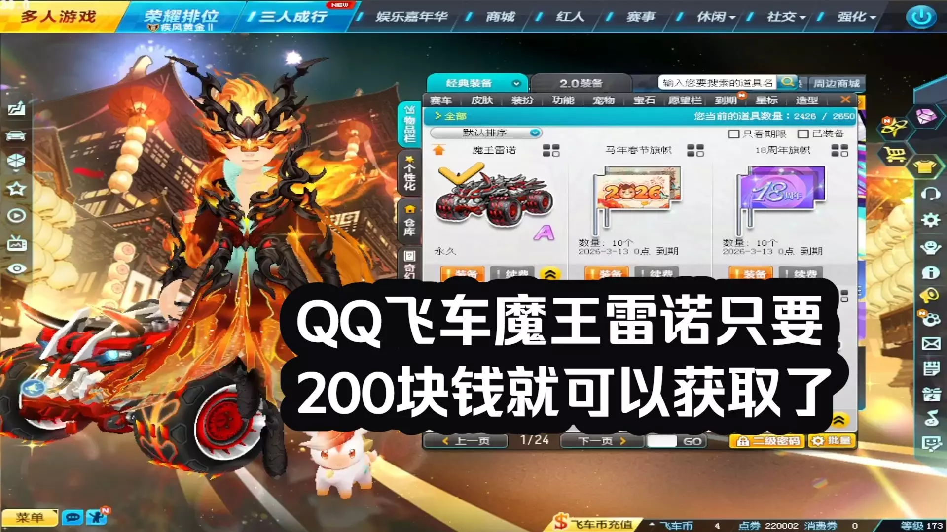 QQ飞车魔王雷诺只要200块钱就可以获取了