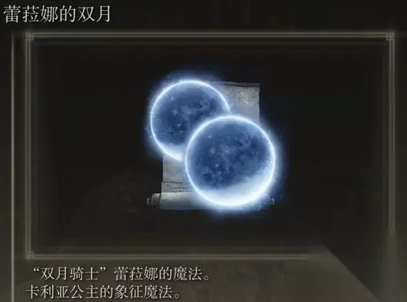 获取方法详情>>>艾尔登法环DLC魔法三辉剑获取攻略 二、蕾菈娜的双月 艾尔登法环魔法蕾菈娜的双月击败双月骑士蕾菈娜获得,BOSS双月骑士蕾菈娜位于恩希斯城,击败后在大赐福兑换获得。
