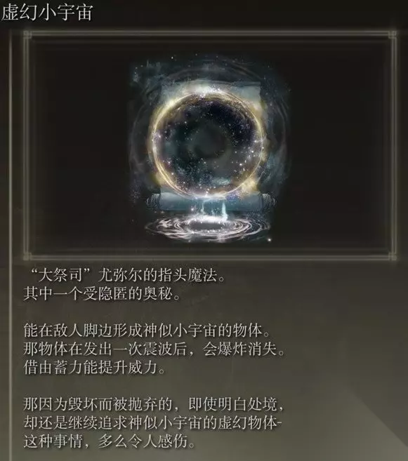获取方法详情>>>艾尔登法环DLC魔法虚幻小宇宙获取详情