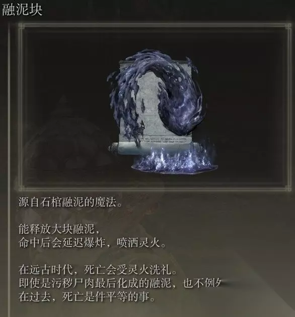 获取方法详情>>>艾尔登法环DLC魔法融泥块获取攻略 五、融泥漩 艾尔登法环融泥漩击败融泥骑士获得,融泥漩融泥骑士使用的魔法。
