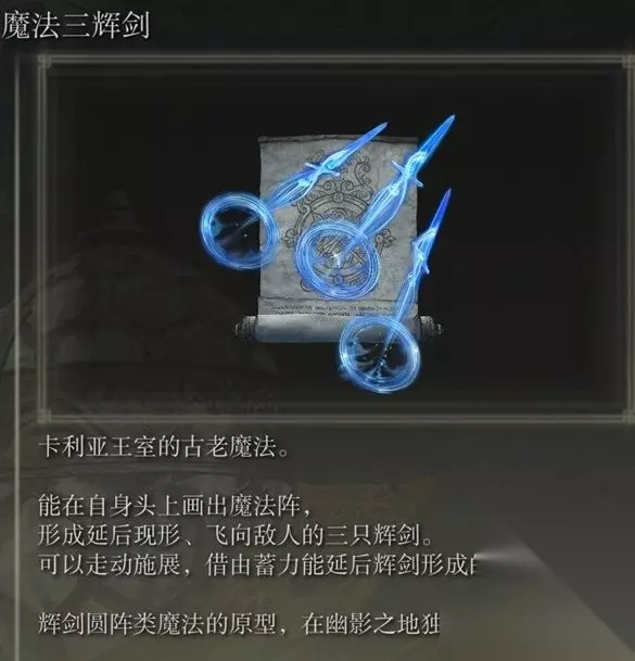 艾尔登法环DLC黄金树之影魔法获取攻略大全 一、魔法三辉剑 艾尔登法环魔法三辉剑在恩希斯城获得,赐福恩希斯城关卡出发,往大门右侧走然后连续往下跳,从下面石头入口跳下去后走出洞穴往右走