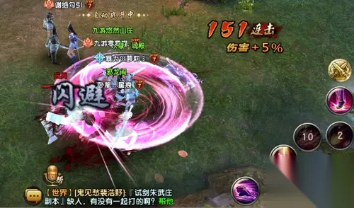 【群雄纷起 四大门派技能DIY】 游戏采用虚拟摇杆+触屏操作的控制方式,除了摇杆外,玩家可以选择触屏实现人物移动。每种门派大概有上十种技能可以选择,玩家可以结合自身操作情况进行搭配,除了基本的技能按键外,还有2个闪避技能。“4+2”技能的模式可以演变成多种技能搭配,游戏虽然对于操作没有太大的要求,但是技能的搭配还是有一定的技巧,灵活搭配,适当的丢闪避技能,能在PK的时候减轻不少压力。 在技能上也有有彩蛋惊喜哟,细节处理上可谓是煞费苦心充满惊喜,例如峨眉的飞花满袖技能,会一不小心把自己转晕了……这么萌的设定小编我也是第一次见呢!