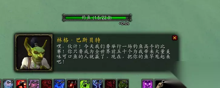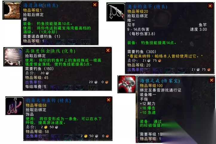 因此一到星期天,下午1点半左右,荆棘谷-藏宝海湾已经是人头攒动了。 而且改版后,跨服务、跨位面的存在,感觉已经不再是跟本服务器的人竞争了而已,已经是全国大赛了,所以想要获得这枚戒指也变的极其困难。 作为休闲玩家的我们,想要得到;那在参加钓鱼比赛之前,就得事先做好并且了解以下 12件事 1、可选项:钓鱼商人处处购买:“巨型浮漂”;AH里购买”隐形药水“(防止有人恶意遮挡任务NPC)和水上行走药剂。 2、学会“寻找渔点”(技能书饱经风霜的日记怎么获得?看最后)和钓鱼技能最好是满的(听说无影响,但是说不定呢)