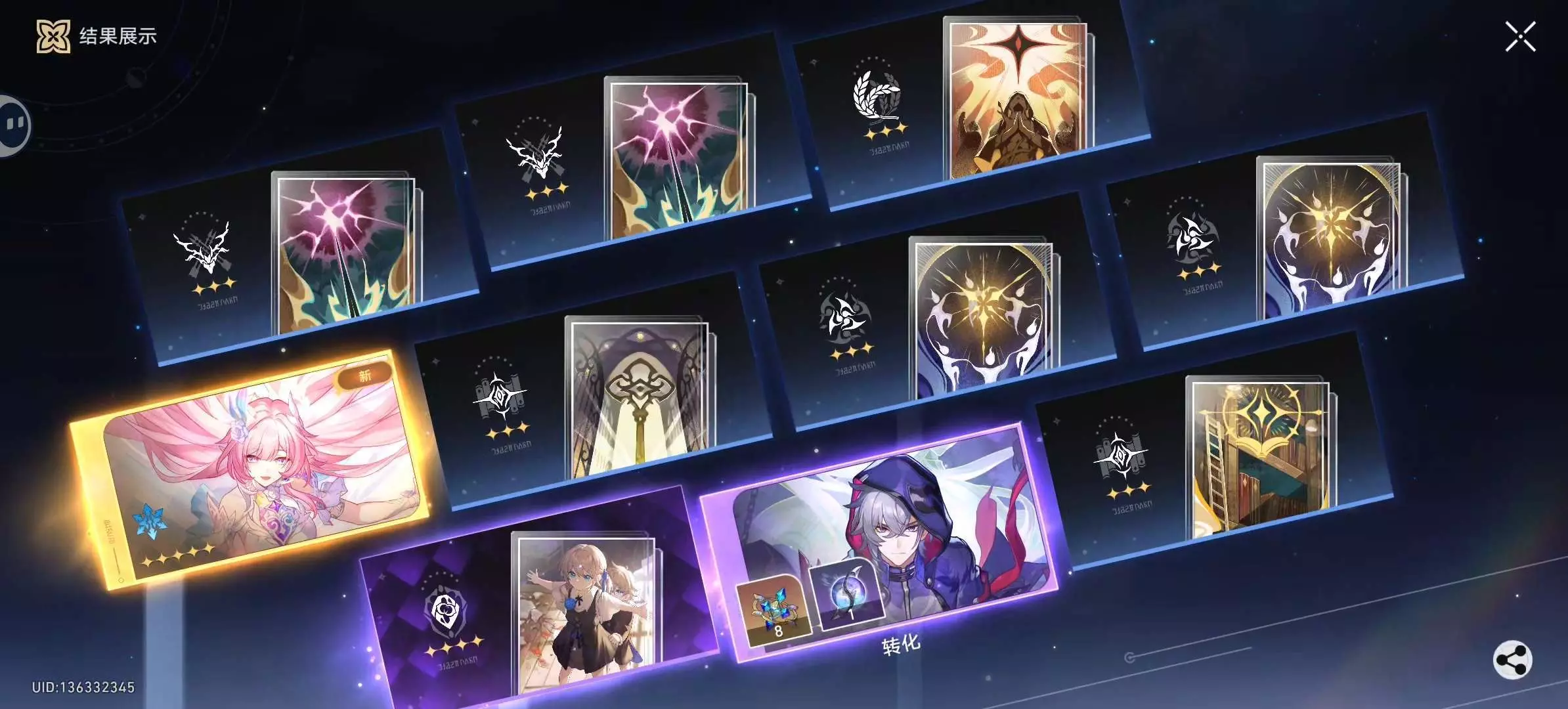 五连不歪1+1了,还差个命座,这样就2+1了,啊哈哈哈哈哈。武器池除了那刻夏和昔涟的专武就没了