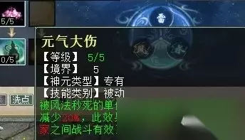 三个风法大招都是PK专用,但是,“长风万里”秒10当你的天赋达到85点,将大招第二排技能“风举云飞”点出,“长风万里”就可以在任务中使用了。为了避免洗天赋造成金钱浪费,任务玩家可以预置大招“长风万里”。 有小伙伴要问,那既然60点天赋没有大招可用,我能不能将先点到别的技能上去,等天赋到了85我再点大招呢?也可以,只是会少一点点法术熟练度,熟练度影响基础伤害。 “长风万里”在PK中也是用的非常多,血VS敏时,火眼一抛,血队一招“长风”就能让敏队猝死。血VS血时,低敏仙用“长风万里”效果会比中敏仙好,将魔、人、鬼吹走,可以起到战术反击作用。 “元气大伤”可以降低对方火力单位的伤害,这就需要仙为中高敏单位,点对方火力单位为主目标输出。优点是不需要消耗怒气,这是一个被动技的大招。点出第二排大招技能,持续回合数可以延长到3回合。这就相当于给对手上了个小“禁咒”啊。