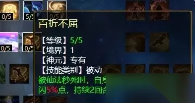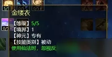 风天赋第一排 风天赋第一排三个技能,分别是:金缕衣(任务、PK通用,增加抗反震几率),百折不屈(任务、PK通用,被仙法秒死时,下回合增加该仙法躲闪率),长风卷云(任务、PK通用,受仙法伤害可增加更多怒气)