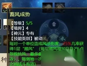 这里呢先解释一下什么是“踏风”状态:每层“踏风”可增加2点忽视风,最多叠加10层,也就是一场战斗最多可获得20点忽视风。 那“临战追风”和“蓄风成势”哪个好,应该选哪个呢?这就要从仙族在PK中的情况来分析了,仙秒完就倒地,这是我们最希望看到的,倒地也是仙族的常态。“临战追风”可以稳定增加“踏风”层数,只要叠加上去了,就不会再减少,战斗初期层数叠加少,但会随着回合延长,越秒越多,适合打持久战的血队。“蓄风成势”是要等风仙出手才会有几率获得“踏风”层数,运气好的话,出手一次秒到6个单位,最多可获得6层踏风,但出手倒地,又会减去2层,如果是出了大招秒10,才有机会一次性叠到10层,在下一回合获得20点忽视风。一旦仙族被控,多个回合不能出手,又次次都被回血起来、因对面再次出手而倒地,前面积累的“踏风”层数就会被清除干净。由此可见,“蓄风成势”一定要保证大仙可以连续出手才能稳定“踏风”,做到越秒越多。如果你的队伍擅长打短平快的节奏,那就选“蓄风成势”,如果对手和你势均力敌,你预判会拖满回合,那就选“临战追风”。 任务玩家只能选“凝神入魄”。 那PK玩家能不能选“凝神入魄”呢?也可以,但是对开号的人要求比较高,选好主目标是秒出高伤害的前提。只想无脑输出的话,可以选“花开见佛”,这也是风法仙越秒越疼的神技之一。另一个就从“临战追风”和“蓄风成势”里挑一个。只有60点天赋的小伙伴就选“花开见佛”吧,60点以上再点“踏风”技能。 大招