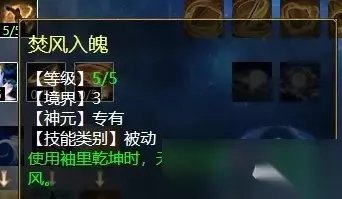任务和PK玩家都可选“紫气东来”和“焚风破体”,因为碎岸增加的克土实在太少,不如后两项实惠。 风天赋第三排 风天赋第三排三个技能,分别是:修魂固魄(任务、PK通用,在战斗中提高人法抗性),沉醉东风(PK专用,对风法没秒死的单位减抗混),焚风入魄(任务、PK通用,风法五法秒时对主目标增加忽视)