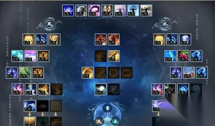 60点天赋以上采用风水天赋的任务仙,风半区参照任务60点的图去点,水法半区参照上图点,只是要将踏水技换成“凝神入魄”。 PK用风雷双天赋可不可以?可以,但主要是针对主雷法的仙,那个会在讲雷法的时候再上图。主风法的仙,最好选用带水法的装备,双大招“好事成双”真香!