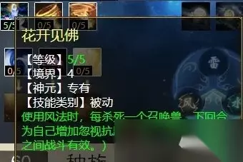 任务玩家选“修魂固魄”和“焚风入魄”。PK玩家选“沉醉东风”和“焚风入魄”。正是有了“沉醉东风”,使得风法在PK中,总是和混人搭配,高敏混配低敏风或者中敏风配后置混,都可以。 风天赋第四排 风天赋第四排有四个技能,后面两个技能互斥,只能选其中一个,它们分别是:凝神入魄(任务、PK通用,使用任意仙法五法秒,都可对主目标增加忽视),花开见佛(PK专用,风法秒死BB可增加下回合的忽视),临战追风(PK专用,每回合开始前几率获得1层“踏风”状态),蓄风成势(PK专用,风法秒到的单位越多,获得越多“踏风”层数,每倒地一次减2层)