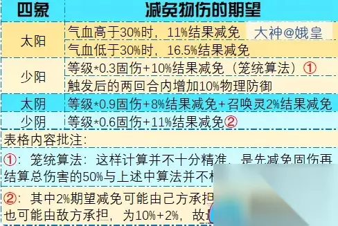 第三推荐的是太阳属性。太阳属性可以增加气血低于30%时的触发几率,对于容易被集火的单位来说非常适用。但是容易被集火的单位如果触发少阳属性,两回合内可以增加来自其他物理单位的抗性,也是一个不错的选择。 最后是少阴属性。少阴属性和太阳属性一样,触发时抵挡的比例较高,同时还有稳定的固伤减免。对于其他单位承担伤害的技能未必就是增益技能,这一点需要特别注意。