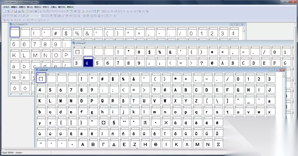 1:首先需要一个FontCreator软件,任意版本都差不多 2:有了此软件后,用此软件打开你想用到的字体文件如图示例是3个