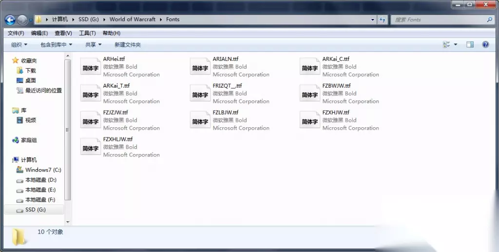 3:假设我所打开的字体是宋体黑体楷体(其实我是转眼就忘了我打开的是什么)假设我想游戏内主字体是宋体,英文是黑体,数字是楷体。那么我选中黑体中的英文字母(可一次性多选),复制粘贴到原来宋体英文字母对应的位置,我再选中楷体中的数字复制粘贴到原来宋体数字对应的位置。然后关掉黑体楷体文件保存该字体文件。 4: 把该字体文件复制9份分别重命名成魔兽世界文件夹里Fonts文件夹的9个文件的名字