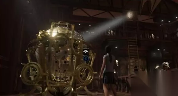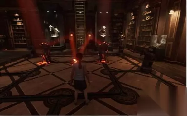 2、然后根据提示可以轻松通过庄园外,来到博物馆,明显能够看到一个大的地球仪, 将其转动到(90e,30n)后,会出现如下光束照射的情况。