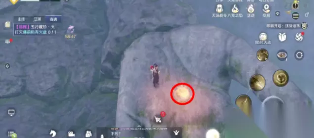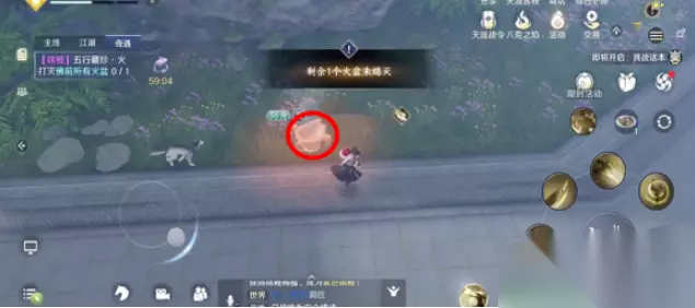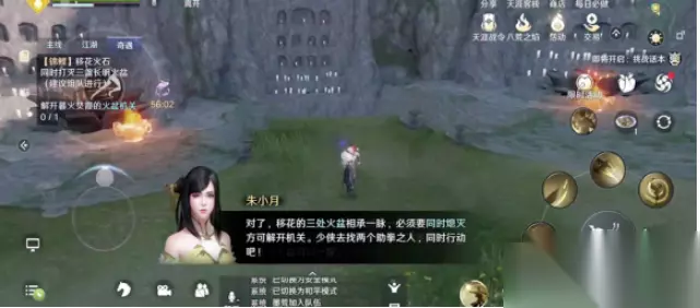 天涯明月刀手游五行藏珍火奇遇攻略: 1、首先找到朱小月开启奇遇。 2、然后打灭佛前所有火盆。 前三个火盆就在朱小月对面(左中右)