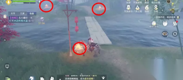 3、按照下图顺序,打灭庙前所有火盆。