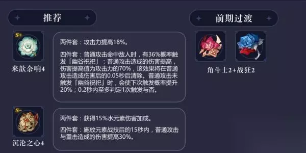 神里绫人圣遗物推荐分享: 1.套装选择:来韵余响4件、沉沦之心(水套)4件、角斗士的终幕礼4件等