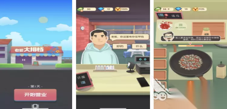 喜欢经营游戏的玩家,可以尝试一下老爹大排档,在这个游戏里会以第一人称的视角,经营一家深夜大排档,每天深夜都会有顾客前来用餐,玩家需要在经营之前准备好食材,并且按照顾客的点餐放入相应的食材和配料,这样经过翻炒烹饪之后就能完成菜品,既能感受到经营玩法,又能锻炼动手能力。 高速下载 普通下载 优先233乐园APP下载 老爹系列游戏中文版大全你就全部分享完了,每个游戏都会构建一个有着多种不同风格的美食世界,玩家在这里可以自由的进行经营,还可以亲自制作美食,可以在这个过程中充分锻炼自己的动手能力,感兴趣的可以挑选几个尝试一下。