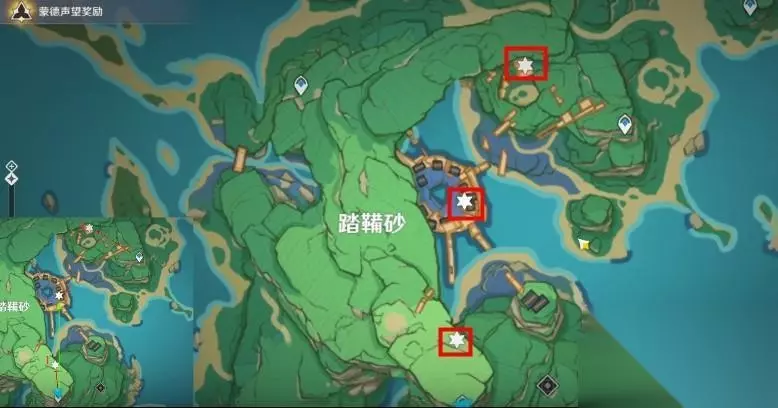 玩家传送到踏鞴砂下面的传送点后,往上走就是悬崖。正下方平台上面的宝箱就是第一把钥匙。