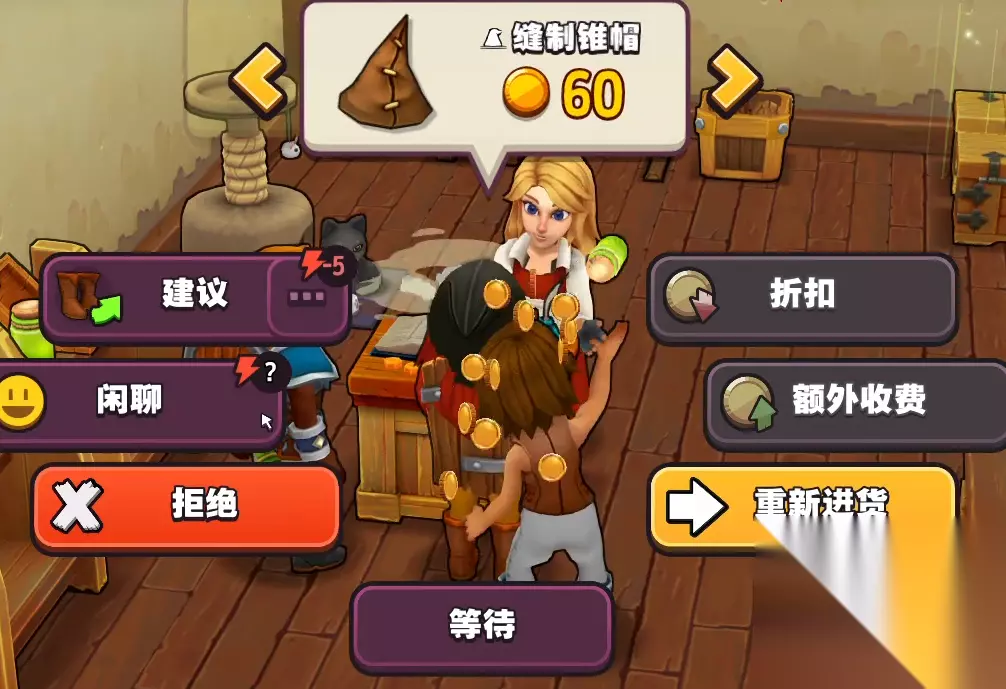 游戏里面每过一段时间国王就会来我们的店里来购买装备。一般这个时间是24小时,而他来的时候第一个购买的装备是以5倍的价格来进行收购的,所以在他来之前咱们就需要将最好的装备展现出来,同时准备好翻倍卷。