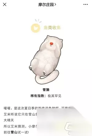 以上便是有关于摩尔庄园雪獭该如何钓的内容分享了,还有着用途向的内容拓展,确实是有着很多特色玩法的设定,玩家需要在特定的环境状态下才可以更好的操作,不清楚如钓的小伙伴都可按照上面来操作和体验!
