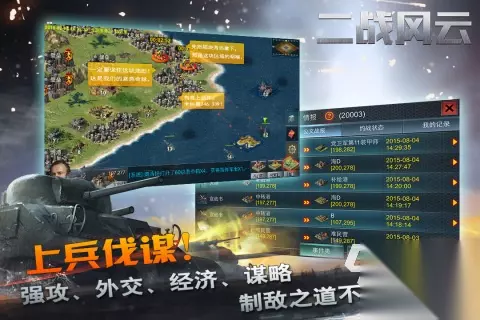 《闪电突袭》把焦点放在了二战中具有代表性的闪电战战术体系上,创建出一种重视快速机动和多种兵种配合的即时作战方式。玩家可以选择不同国家的阵营开始游戏,身处东线和西线两个动态战场之中,在不断变化的战局中指挥三号突击炮、虎式坦克这些德军主力装备,或者带领谢尔曼、野马战机这些盟军部队去争夺战略据点。玩家们需要利用游戏中进攻方和防守方的游戏规则来组织进攻战斗,并将进攻胜利者交给指挥部队,去协调各种武器以及补给物资的运作问题。 扫码下载该游戏 高速下载 普通下载 优先233乐园APP下载 2、《二战风云》