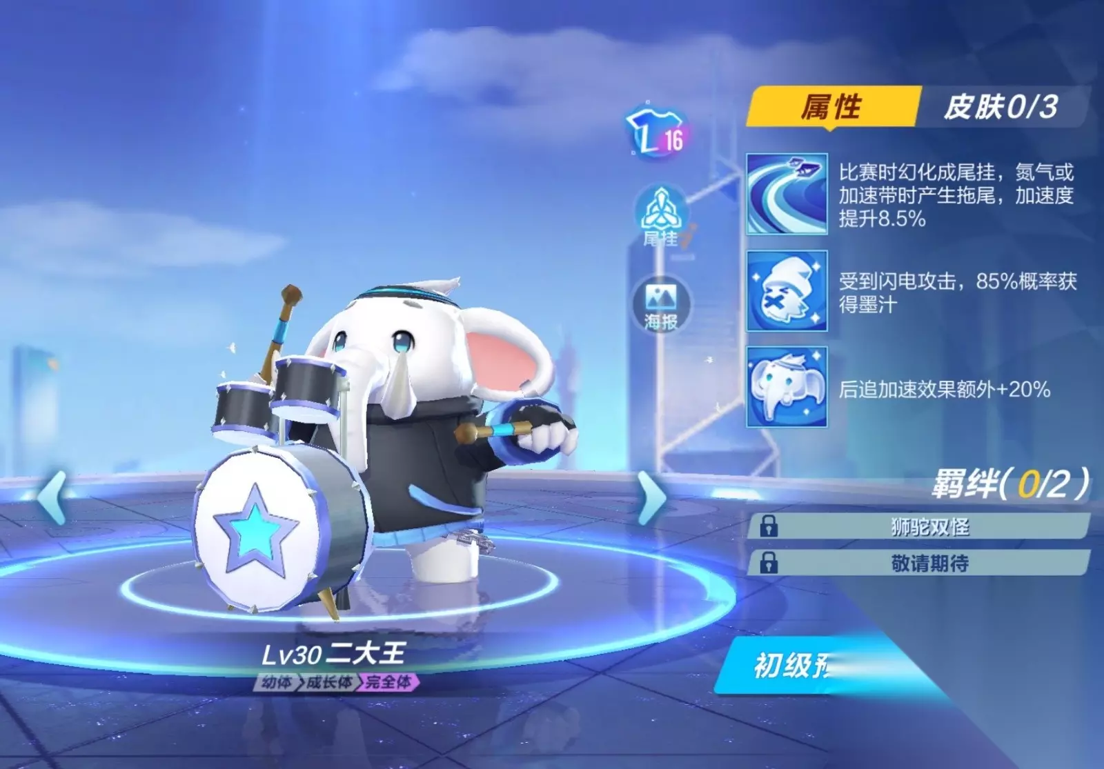 要是常跑千户苗寨、北海渔场这类腾空点多的地图,那大大王会是比羊力大仙更合适的选择。在使用落地喷的时候,有概率获得很高的速度加成。在飞跃点密集的赛道里,每次落地触发技能都能拉开不小的优势。而且它的还有32%的概率免疫香蕉皮,在道具模式的时候也能派上用场,属于兼顾两种模式的实用选择。刚加入战队的玩家如果战队币不够兑换前两个宠物,可以先用二大王过渡,它的获取门槛非常低,不需要攒太久的战队币就能拿到。不过它的技能特性偏娱乐向,技能触发后的收益上限不算高。等熟悉了游戏玩法、攒够了战队币之后,还是建议换成前面提到的两个竞速宠物,能明显感受到成绩的提升。