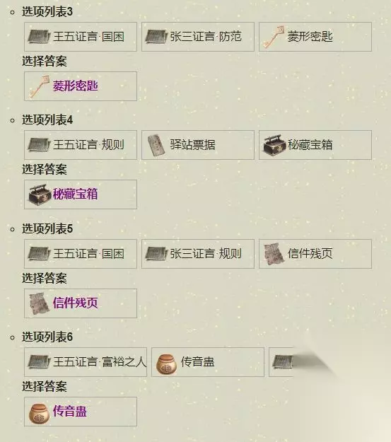 酉时三刻 东海移花 案件概述 张三、李四及王五三人均声称,埋于移花的一处秘藏与自己有关,不知何故。 ※猜想链选择 猜想链1:疑点 张三、李四与王五三人的父亲对他们如何获取宝藏制定了一份规则,并要求他们按规则行事。