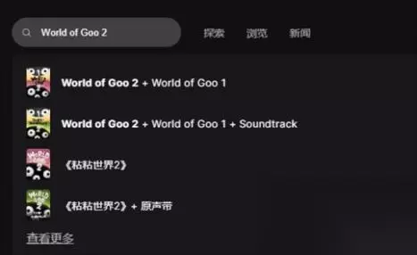 黏黏世界2中游戏的英文名字叫做“World of Goo 2”,我们在Epic Games store平台的左上角的搜索栏里输入这串英文就会弹出这款游戏,我们点击即可进入这款游戏的商店购买页面。 黏黏世界2英文名称叫什么 答:“World of Goo 2“ 英文名称介绍 1、我们在Epic Games store平台的左上角的搜索栏里输入“World of Goo 2”就会弹出这款游戏。 2、点击进入该游戏的商店购买页面,该游戏PC端目前只在Epic Games store,售价为93元。